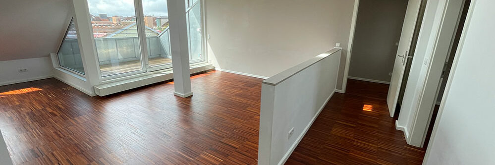 Alterung, Abnutzung oder Schäden sind nicht zwangsläufig ein Grund, das Parkett neu zu verlegen. Ein fachgerechtes Schleifen und die anschließende Versiegelung, lassen Ihren Parkettboden wieder in neuem Glanz erstrahlen.